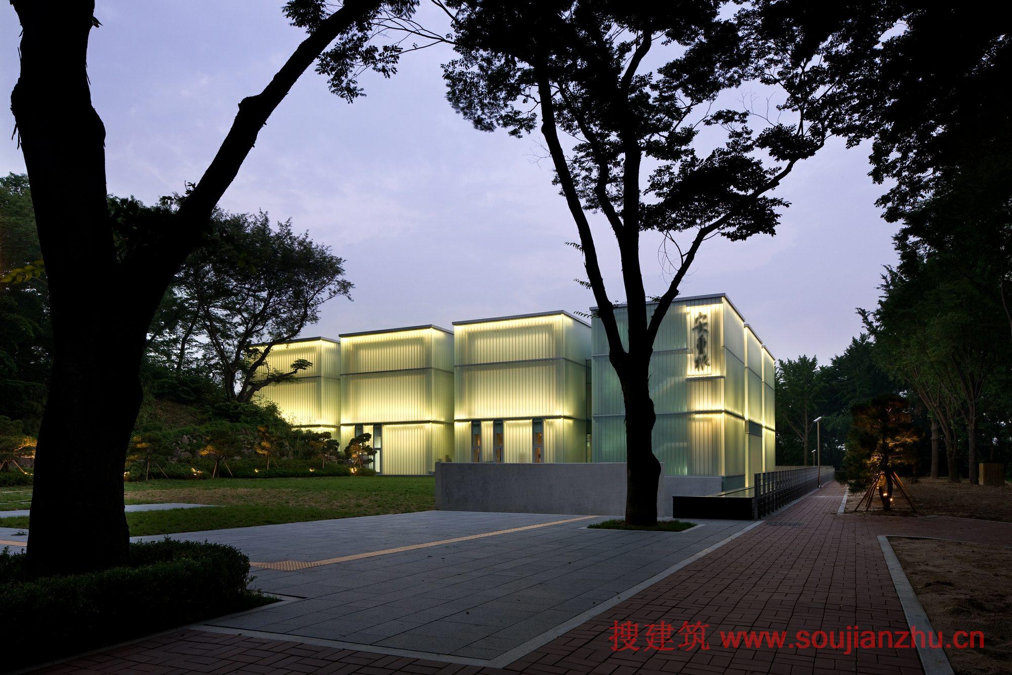 მემორიალური დარბაზი იაპონიის კოლონიური პერიოდის საომარი სალოცავის მიმდებარედ მდებარეობს. U-ს მაგვარი მინის გამჭვირვალობა არა მხოლოდ შენობის საზღვრებს აბუნდოვნებს, არამედ სინათლისა და ჩრდილის კონტრასტის საშუალებით ისტორიულ ნაწიბურებს ახლად აშენებულ მემორიალს უპირისპირებს.